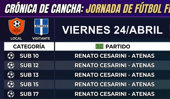 El fútbol femenino continúa ganando terreno y este viernes la atención se centra en el predio del Club Renato Cesarini. Se ha confirmado la cartelera de encuentros que enfrentará al conjunto local contra Atenas