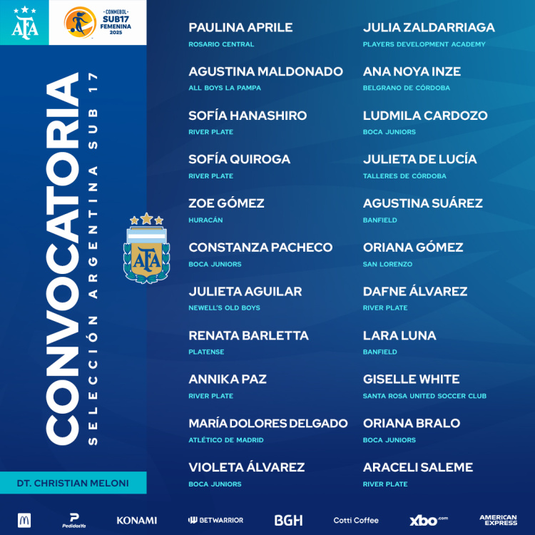 Sub 17 Femenina: nómina de jugadoras convocadas para el Sudamericano 2025